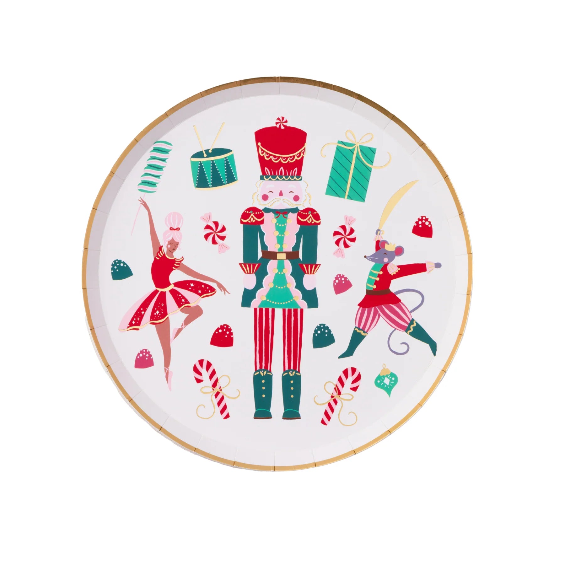 Dale un toque festivo a tu mesa navideña con nuestros Platos de Postre Cascanueces. Con hermosas ilustraciones inspiradas en el ballet Cascanueces, estos exquisitos platos añaden un toque mágico a cualquier celebración navideña. ¡Combínalos con nuestras toallas de papel a juego para una encantadora mesa de fiesta con temática de Cascanueces!